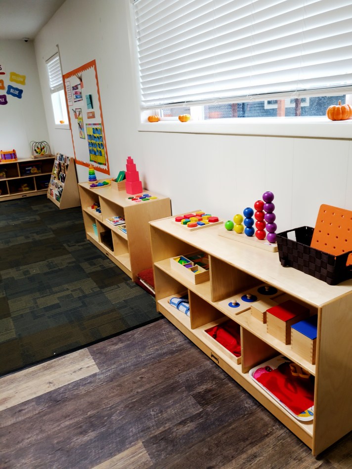 Our toddlers have monthly themes with weekly art projects and outdoor time twice a day. We work on potty training throughout the day and introduce some Montessori activities in this class.